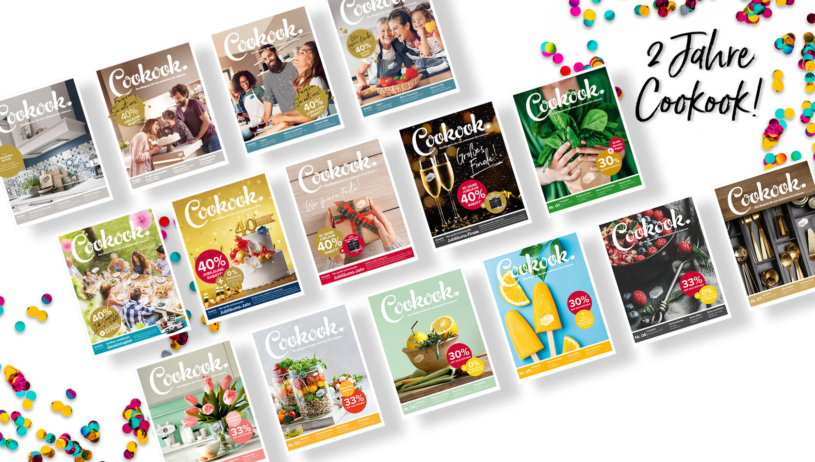 2017 ist die Geburtsstunde des Cookook – gleichzeitig feiert küchenquelle 40-jähriges Jubiläum. Flankiert von attraktiven Angeboten, inszeniert die Werbeagentur Bloom dieses Schwerpunktthema mit einem eigens gestalteten Jubiläums-Logo sowie Einblicken in die Firmen-Historie und Unternehmenswerte. Highlight: das große Jubiläums-Gewinnspiel, das eine tolle Gelegenheit bietet, um schnell und direkt mit der Zielgruppe in Kontakt zu kommen.