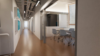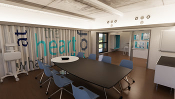 Der Empfangsbereich heißt den Besucher herzlich willkommen und der Wartebereich bietet eine angenehme Aufenthaltsqualität. Für diesen Bereich ist eine kleine „Hall of Fame“ angedacht, die anhand von Prototypen die junge Geschichte des Unternehmens erzählt und die Innovationskraft von Hemovent™ verdeutlicht.