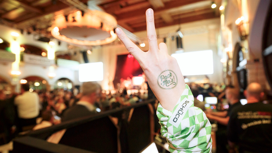 Das Unternehmen Schüco lud an fünf Abenden der Messe BAU in München – der Weltleitmesse für Architektur, Materialien und Systeme – zum Tagesausklang über 6.000 nationale und internationale Kunden in das Traditionsgasthaus Löwenbräukeller ein. Als Kreativagentur mit Sitz in Nürnberg und München war es eine besondere Herausforderung für uns, die Eventkommunikation für einen der Marktführer für Fenster, Türen und Fassaden zu entwickeln und zu gestalten. Unter dem motivierenden Motto „Pack ma’s“ schnürten wir ein kreatives, einheitliches Paket – vom Begrüßungsbanner über Speisekarten und aufmerksamkeitsstarke Leitsysteme bis hin zu überraschenden Give-aways.