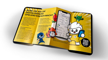 Auch im Print zeigt Bloom seine kreative Handschrift. Statt klassischer Formate wurde ein Kreuzwickelfalz-Flyer im Handyformat gestaltet, der inhaltlich die Kampagne aufgreift und gleichzeitig als handliches Take-away begeistert. Mit allen zentralen Informationen zur App, den Messehighlights und einem Call-to-Action zum Demotermin verbindet er haptische Kreativität mit digitalem Nutzen – ein Beweis, dass Print auch im digitalen Zeitalter überrascht, wenn die Idee stark ist.