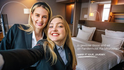 Für die nahtlose kreative Umsetzung gingen wir dorthin, wo die Versprechen der EVP eingelöst werden: Direkt in die verschiedenen Hotels der Dachmarke. Eine Woche lang wurden mit dem Fotografen Rasmus Kaessmann in vier Hotelmarken in drei Städten echte DH Mitarbeiter und ihre Messages an die Bewerber abgelichtet. Dabei wurden nach Maßgabe der Digitalplanung jeweils zur Kanalstrategie passende, zielgruppenspezifische Motive geschaffen – alles unter der EVP „Make it your journey“.