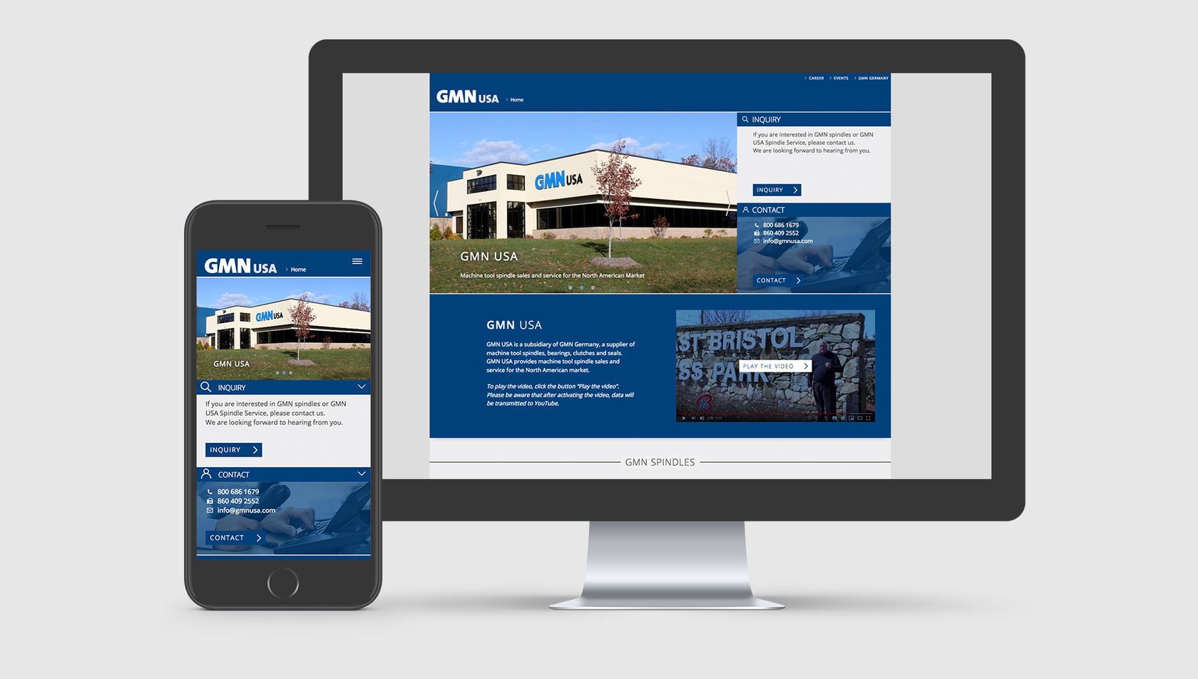 Auf Basis der deutschen GMN Website, die Bloom Nürnberg vor zwei Jahren erstellt hat, wurde jetzt die Website für GMN USA gebaut. Durch den smarten modularen Aufbau konnte der Content der Website adaptiert und an das spezifische Leistungsangebot der US-amerikanischen Niederlassung angepasst werden: den Vertrieb und die Reparatur von Spindeln.
