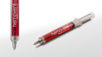 Zusätzlich ziehen eine beleuchtete Stele und verschiedene Produktposter die Aufmerksamkeit der Besucher auf sich. Der Produktflyer in Form des MOBYBOX®-Logos durfte im Messe-Paket nicht fehlen und kommuniziert den jeweiligen Einsatzzweck des MOBYBOX®-Systems (stationäres und ambulantes Szenario) und den Gas Exchanger als Stand-alone-Lösung. Auffällige und nützliche Giveaways runden das Paket ab: Für die Besucher gibt es Tütchen mit Seedballs (kleine Saatgut-Kugeln) oder Kugelschreiber in Spritzenform. Hemovent™ ist mit seinem Rundum-sorglos-Paket bestens für kommende Fachmessen ausgestattet, von denen es in Zukunft hoffentlich wieder viele weitere geben wird!