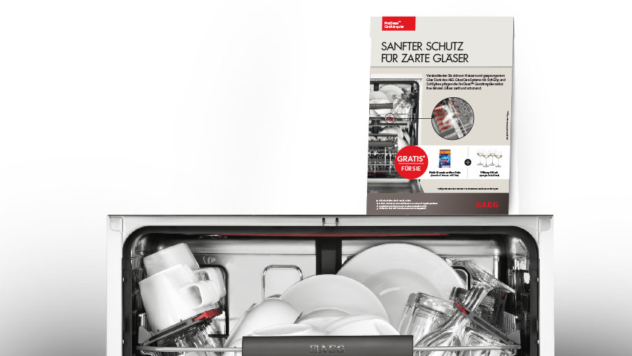 Ob feine Gläser, schicke Teller oder massive XXL-Bräter – mit den innovativen AEG ProClean™ Geschirrspülern erzielt man immer glänzende Ergebnisse. AEG bringt nun ein Special mit vier ProClean™ Aktionsmodellen an den Start. Das Besondere: Beim Kauf eines dieser Geräte bekommt man als Bonus einen 3-Monatsvorrat Finish Quantum Max Tabs sowie 4 edle Villeroy & Boch Weingläser gratis dazu!