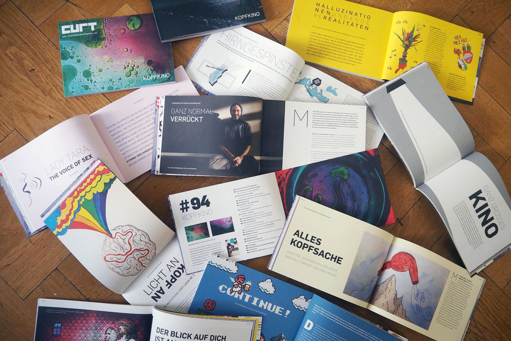 100 Seiten rund ums Thema Kopfkino u.a. mit Münchner Hirngespinsten, Hirntrigger, Halluzinationen und anderen Realitäten. Außerdem die erotische Hypnose der Lady Tara; über das Kunstprojekt RHOGG, die LSD-Lampe und Luzide Träume; im Gespräch mit Münchner Traditionskinos; der kreative Prozess des Drehbuchschreibens mit Sabine Bachthaler sowie ein Einblick in den Kopf des Autors und Regisseurs Emre Akal. Ein Interview über das ganz normale verrückt sein mit Yogalehrer und Musiker Petros Haffenrichter und ein Gespräch mit Senior Video Producer der GameStar Christian “Fritz” Schneider über digitale Spielwelten. Fun Facts über unser Gedächtnis, und wie Kopfkino wirklich ist, wenn man drinbleibt.