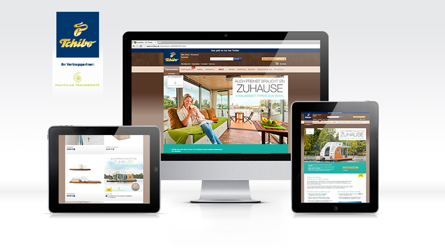 Unter dem Motto „Auch Freiheit braucht ein Zuhause“ gestalteten die Kreativen von Bloom ein aufmerksamkeitsstarkes Keyvisual für die Vermarktung exklusiver Hausboote auf der Tchibo Website.